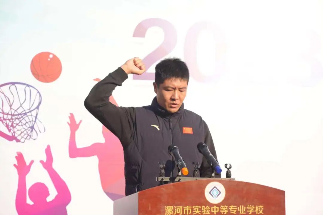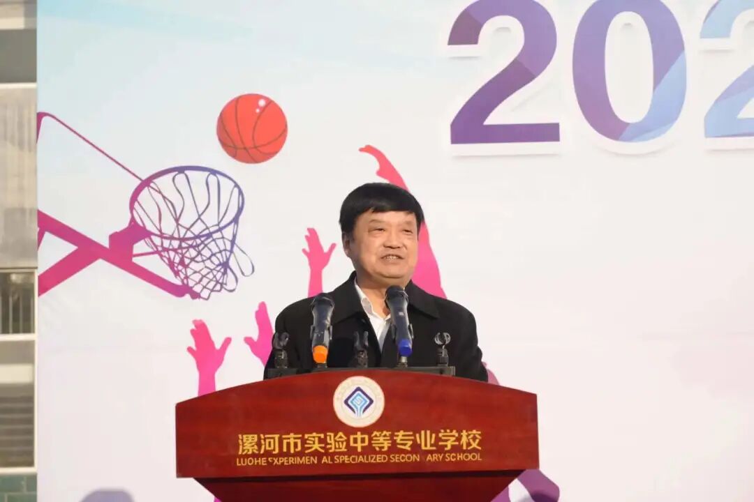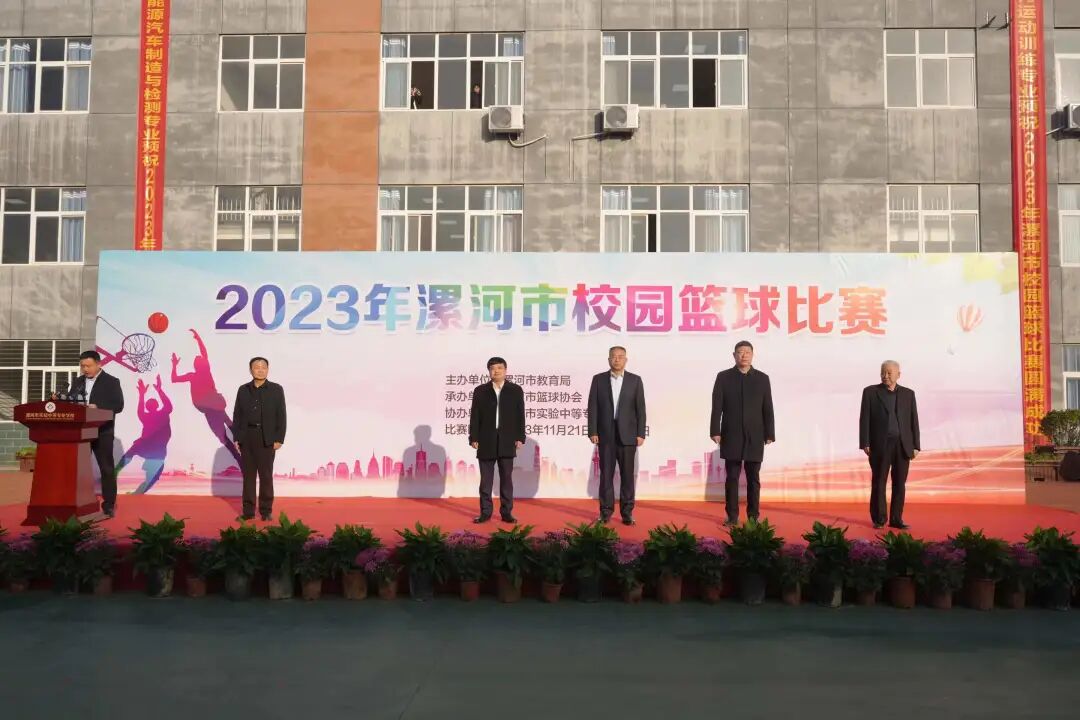 为贯彻落实省委、省政府《关于全面加强和改进新时代学校体育工作的实施意见》,完善我市校园篮球三级竞赛体系,搭建学习、交流、展示的平台,11月21日上午,2023年漯河市校园篮球比赛开幕式在漯河市实验中专举行。市委教育工委书记、市教育局党组书记、局长王海东,市教育局领导刘盘松、郭俊伟、王耀宗,漯河市篮球协会主席徐伟,漯河市实验中专校长万国栋出席开幕式,开幕式由郭俊伟主持。